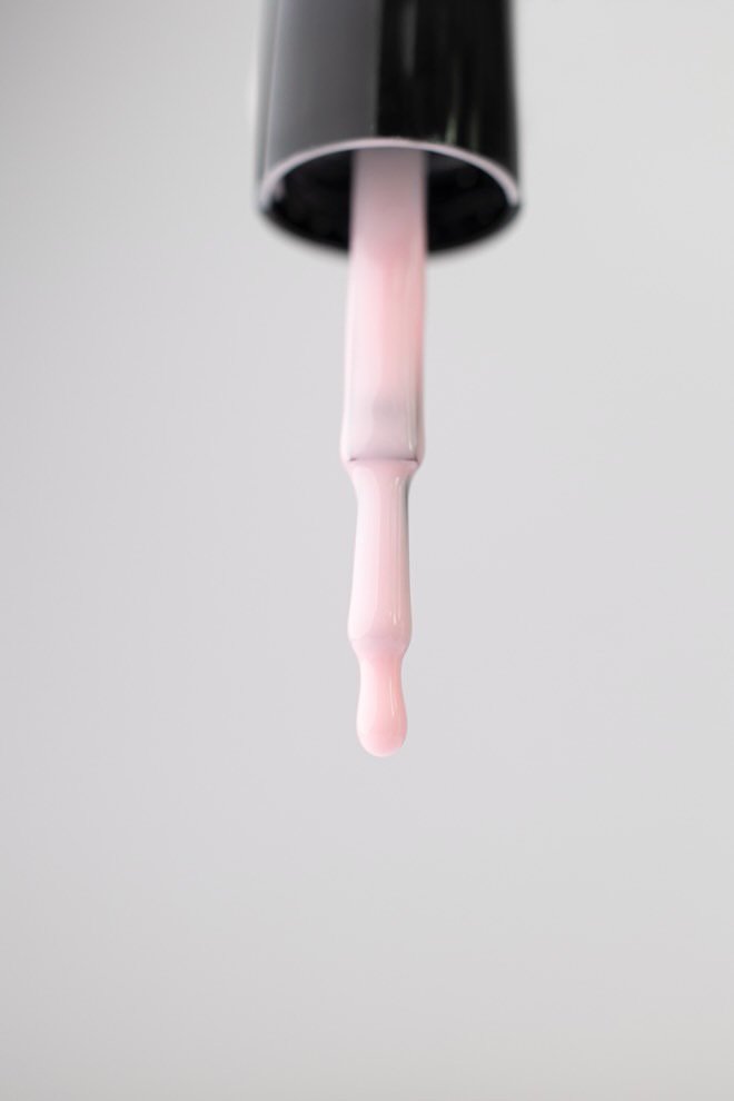 ✔️ Jei atsiranda nelygumų, prieš džiovinimą apverskite nagą kelioms sekundėms žemyn, kad gelis gražiai pasiskirstytų. Galite padėti sau plono teptuko pagalba.